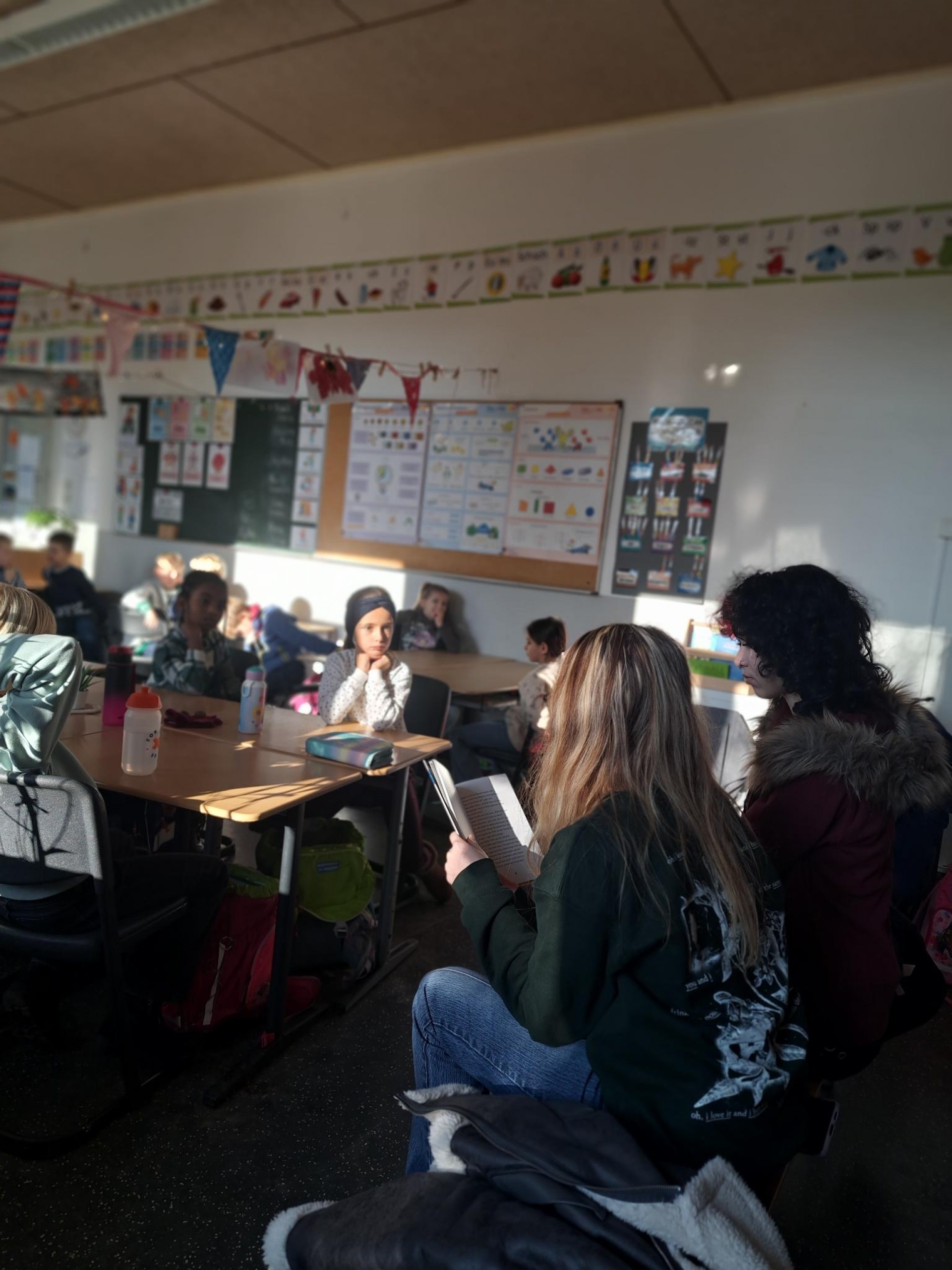 Die Kinder der Bonifatiusschule hörten aufmerksam zu und ließen sich begeistert auf die vorgelesenen Geschichten ein. Die Jugendlichen überzeugten mit viel Engagement und schafften eine schöne Atmosphäre zwischen „Großen“ und „Kleinen“.