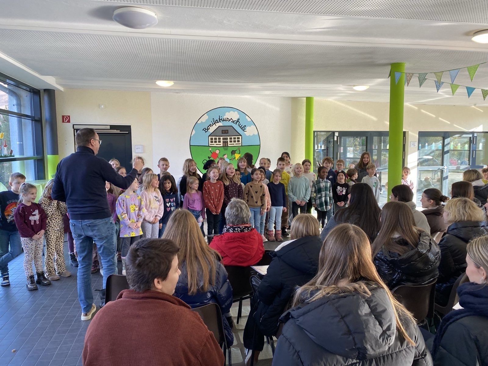 Am Samstag hieß die Bonifatiusschule alle Kinder, Eltern, Freunde und Gäste herzlich willkommen zu unserem Tag der offenen Tür. Schon der Auftakt war besonders stimmungsvoll: Unser Schulchor begrüßte die zahlreichen Besucherinnen und Besucher mit fröhlichen Liedern und sorgte für eine einladende Atmosphäre.
