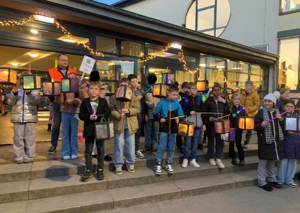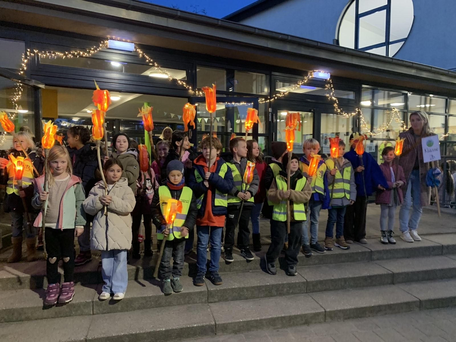 Im Anschluss zog der Martinszug durch die Straßen rund um unsere Schule. Mit ihren bunten Laternen erhellten die Kinder die herbstlichen Wege und sorgten für eine besondere Stimmung. Dank der freiwilligen Feuerwehr Holsterhausen, die für unsere Sicherheit sorgte, konnten wir den Zug unbeschwert genießen.