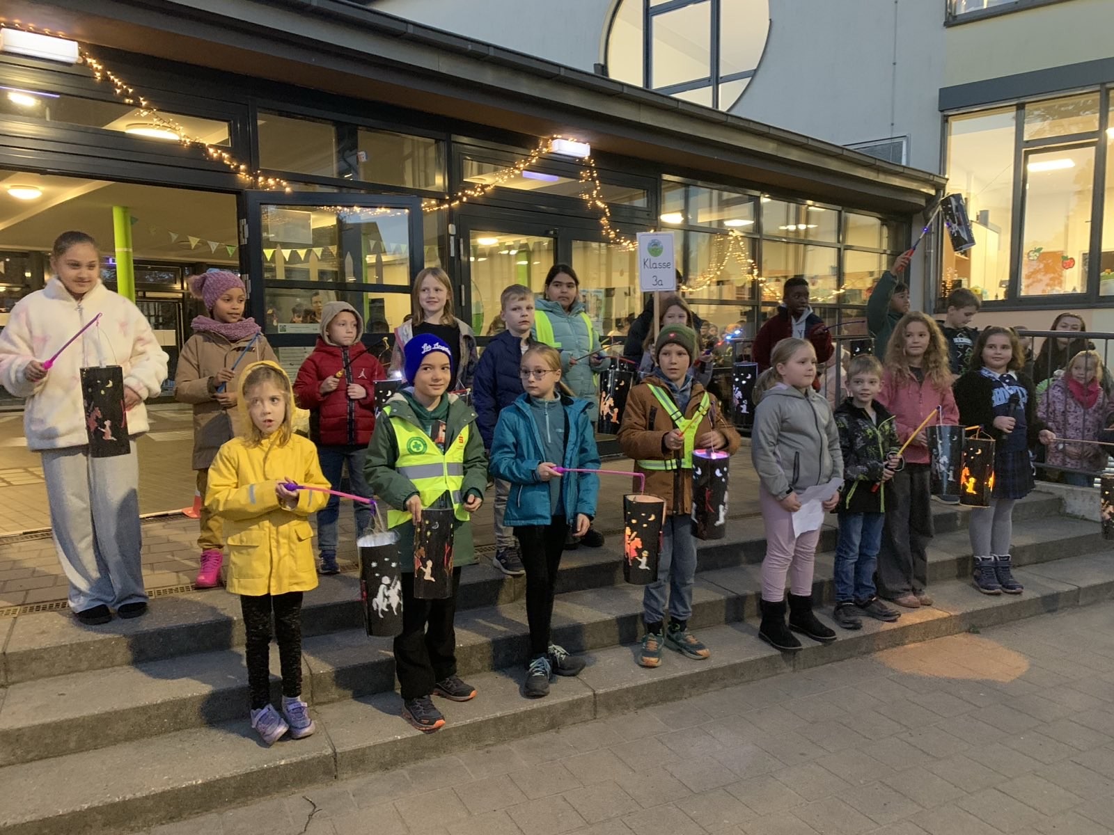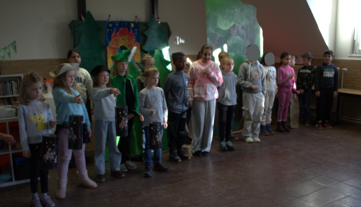Bereits am Unterrichtsvormittag sorgte die Klasse 3a für einen besonderen Auftakt: Sie zeigte allen Klassen das einstudierte Martinsstück in Form einer Theateraufführung und brachte die Geschichte von St. Martin eindrucksvoll auf die Bühne.