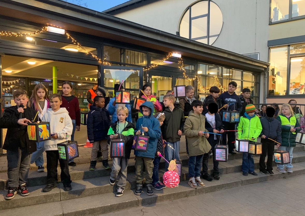 Bei goldenem Herbstwetter und unter einem hell leuchtenden Vollmond feierten wir am Mittwoch unser traditionelles Martinsfest an der Bonifatiusschule. Die Vorfreude der Kinder war groß, als sie stolz ihre liebevoll gebastelten Laternen präsentierten, die in allen Farben leuchteten.